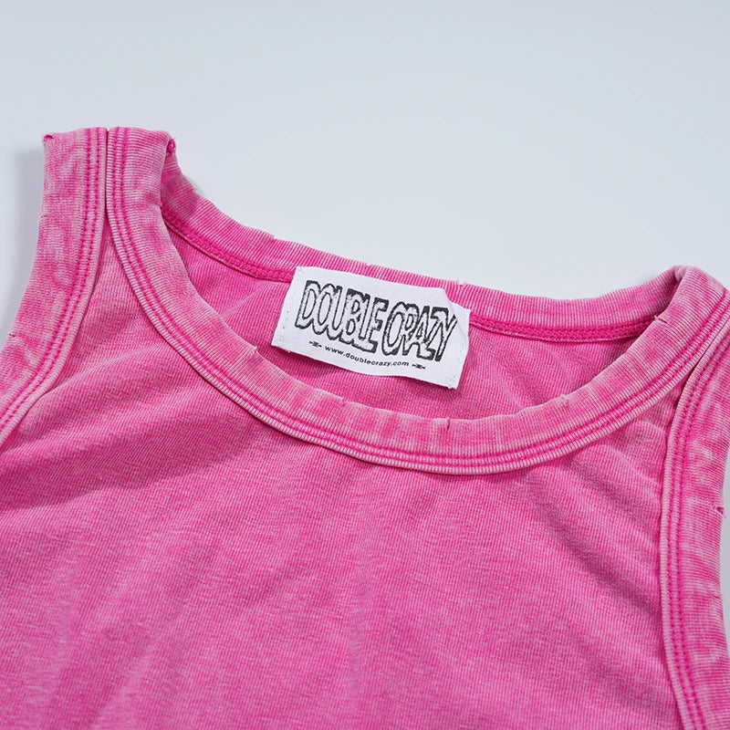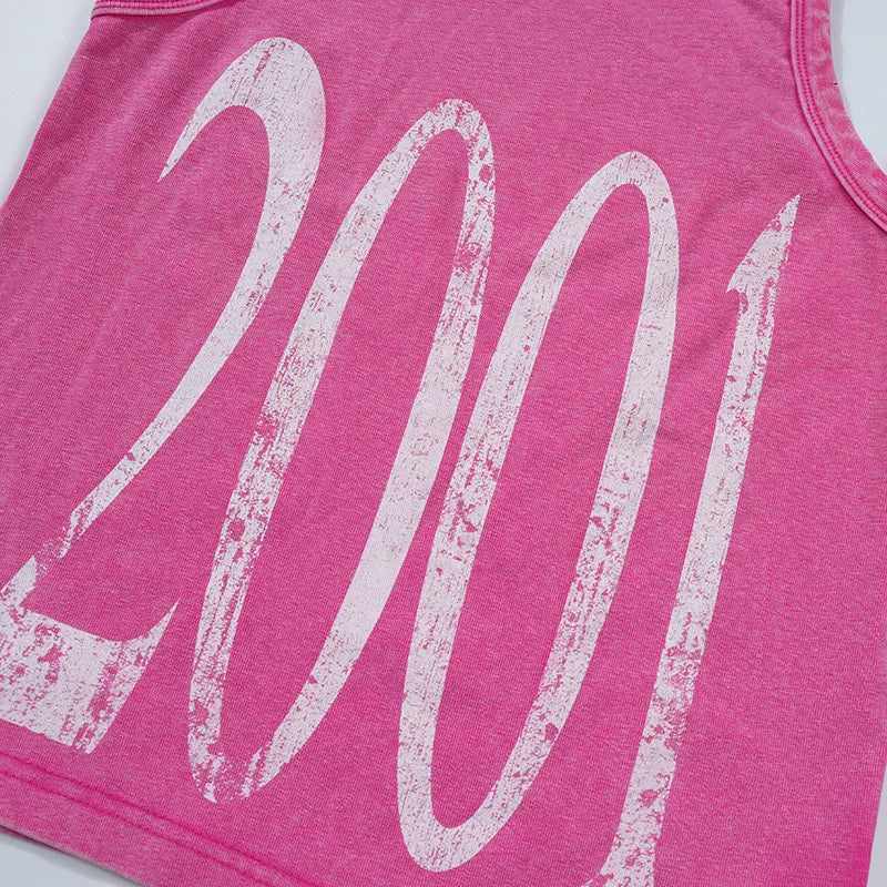 Camiseta sin mangas ajustada efecto envejecido 2001 Y2K-524