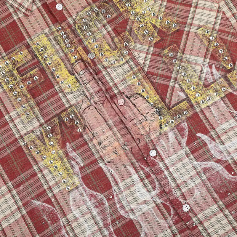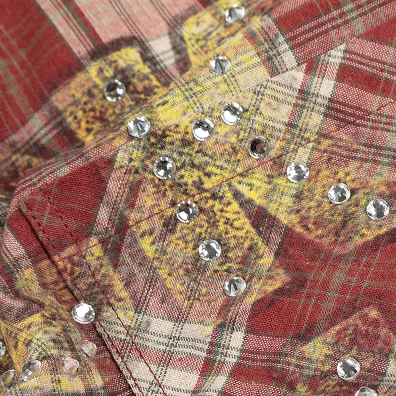 Camisa a cuadros estilo punk con brillos (Bling Edgy Punk Plaid Shirt)-539